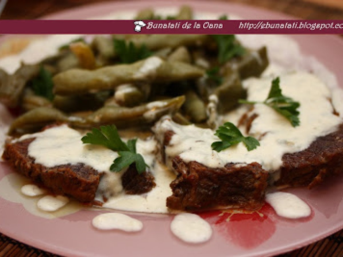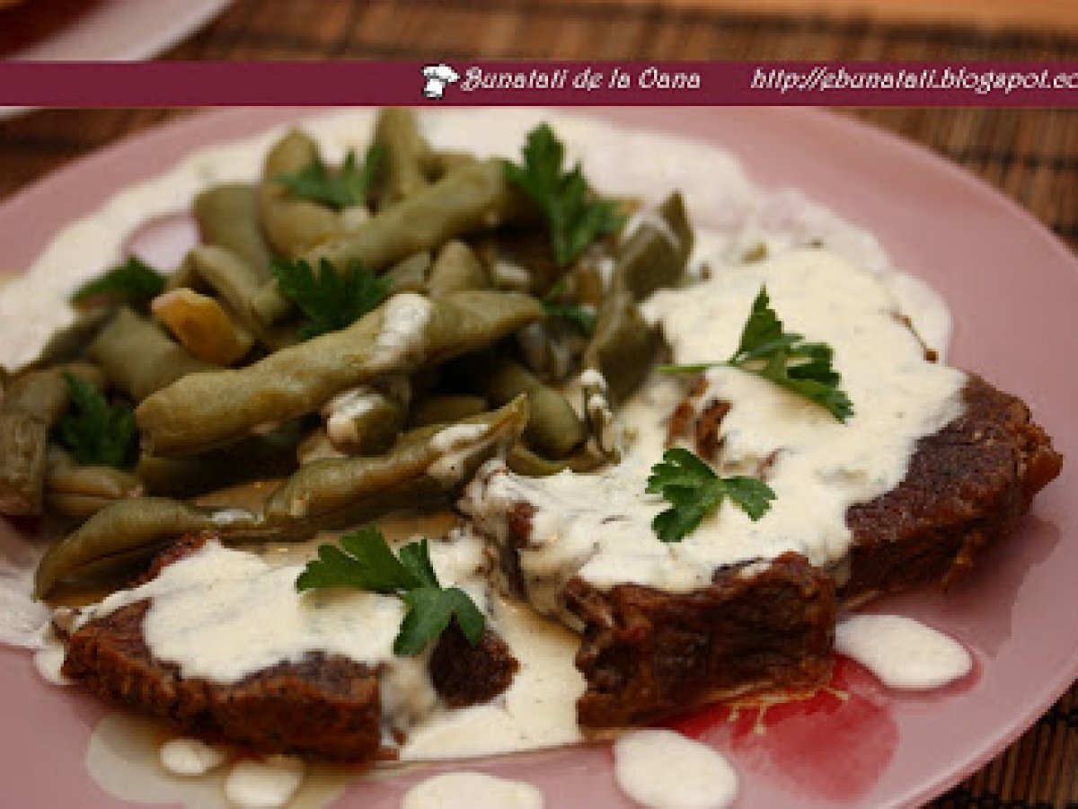 Vita cu sos gorgonzola PrecedentulUrmătorul Felul principalFoarte ușor30 min Trimite unui prieten Printează pagina Adresează o întrebare autorului Postează o poză cu rețeta gătită de tine Ingrediente 4 Ca ingrediente am folosit : 750 g carne de vita un pahar de vin alb sare si piper dupa gust 2-3 linguri de ulei Pentru sos : 100 g branza gorgonzola 100 ml smantana 50 g unt piper si sare in functie de gust