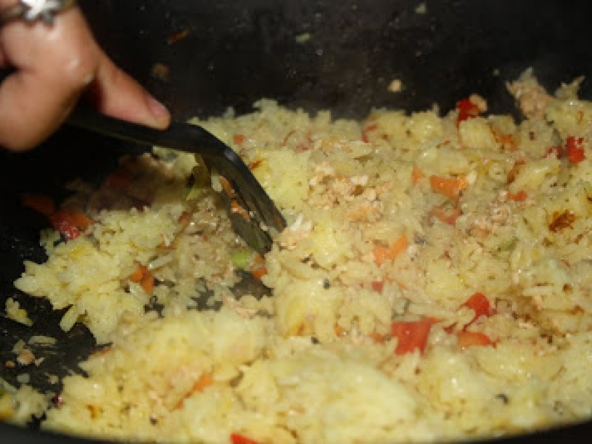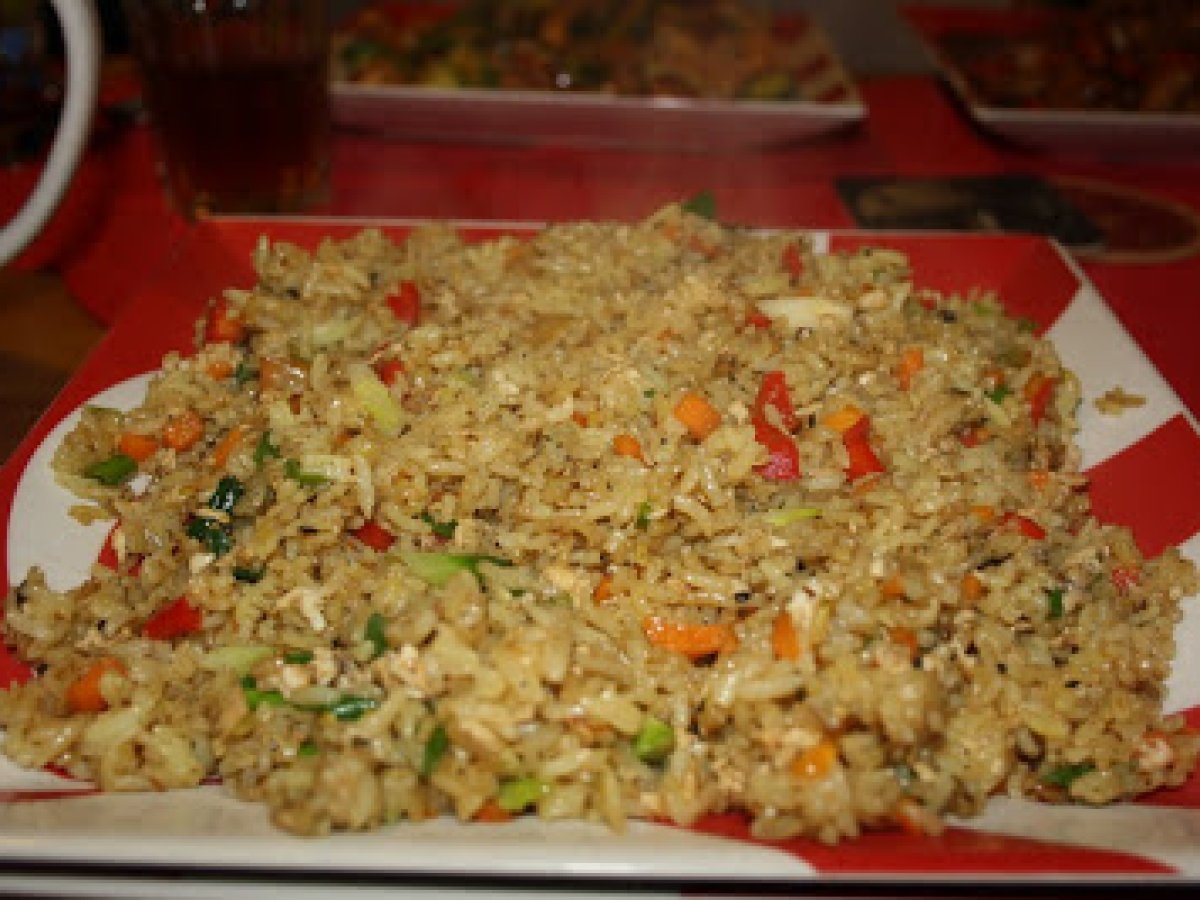 Wok away 1 - chinese fried rice PrecedentulUrmătorul Felul principalFoarte ușor45 min90 Kcal Trimite unui prieten Printează pagina Adresează o întrebare autorului Postează o poză cu rețeta gătită de tine Ingrediente 5 orez cu bobul lung 1 ou, 2-3 catei de usturoi, un pic de ghimbir ras, 1 fir de ceapa verde, jumatate de ardei gras, un pic de ardei iute un morcov Cost estimat: 1.66Euros€ (0.33€/porție)