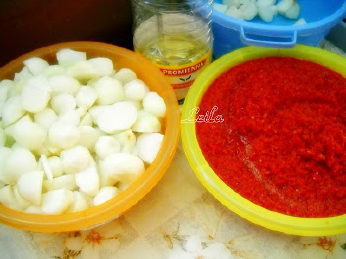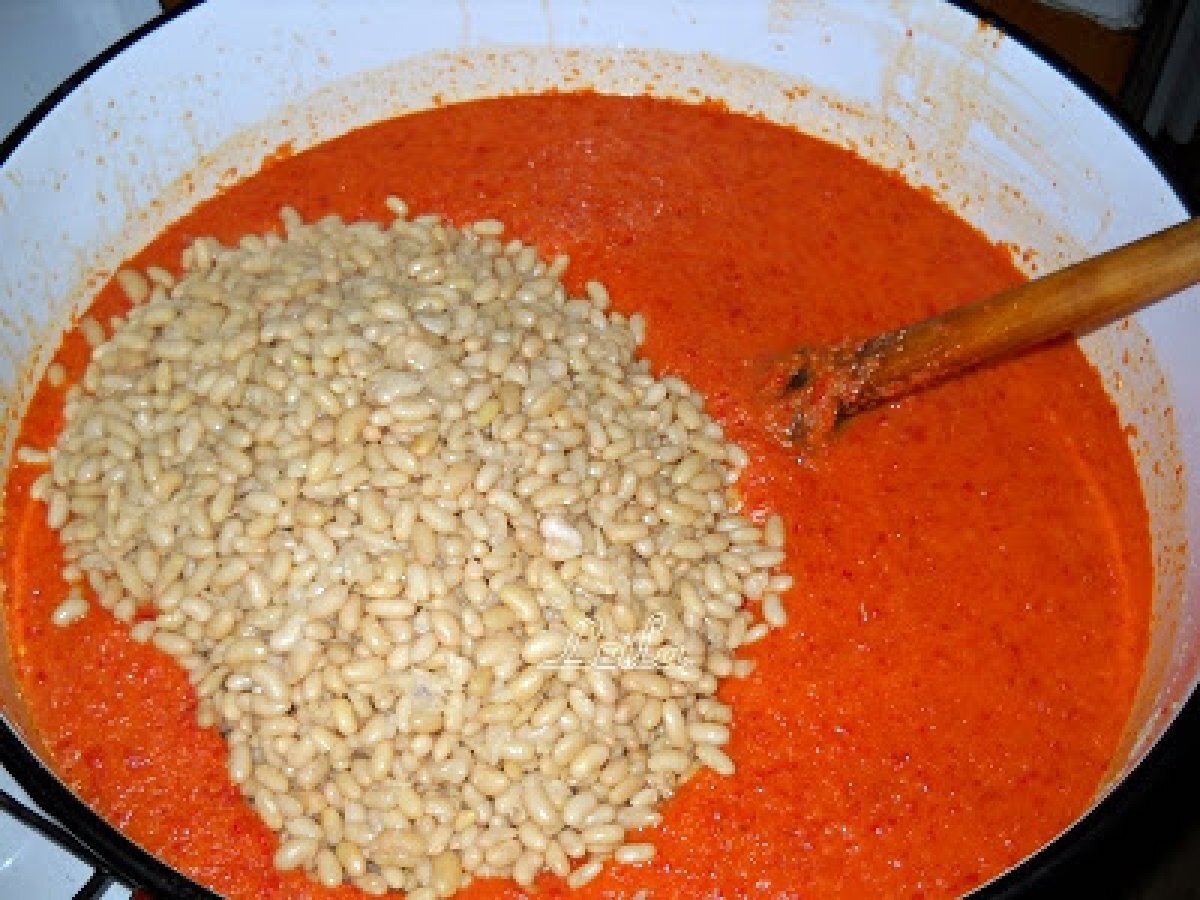 Zacusca cu fasole boabe PrecedentulUrmătorul Felul principalFoarte ușor50 min Trimite unui prieten Printează pagina Adresează o întrebare autorului Postează o poză cu rețeta gătită de tine Ingrediente 2 3 kg ceapa 3 kg gogosari 1 kg fasole boabe alba 1 l ulei 750 ml bulion sare grunjoasa piper , 2 foi de dafin