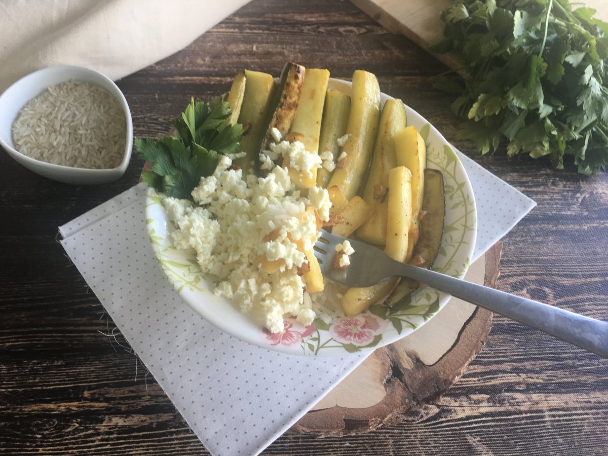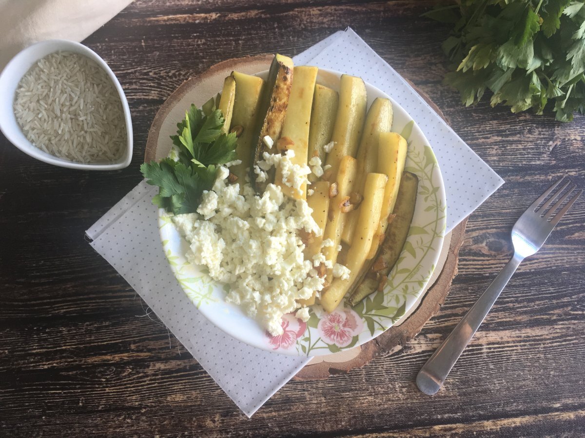 Zucchini cu lamaie si feta PrecedentulUrmătorul Felul principalFoarte ușor25 min404 Kcal Trimite unui prieten Printează pagina Adresează o întrebare autorului Postează o poză cu rețeta gătită de tine Un preparat vegetarian si fara gluten, usor de preparat. Ingrediente 1 1 lingura ulei de masline 1/2 catel de usturoi 1/2 zucchini Sare Piper 2 lingurite de zeama de lamaie 60 gr orez 40 gr feta patrunjel