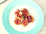 Ingrediente: o pulpa din spate de miel ( se da la o parte grasimea vizibila si se dezoseaza) sare piper boabe 4 linguri cu pasta de rosii apa putin cimbru 2...