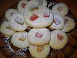 Ingrediente: 300 g faina 180 g unt 100 g zahar pudra 1 galbenus crud 1 lingurita praf de copt un praf de sare gem de caise pentru umplut zahar pudra pentru pudrat