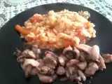 Ingrediente: 320g muschi de vita;200g morcov;50g unt;40ml ulei masline;10ml sos de worcestershire;zeama de la un sfert de lamaie;patrunjel tocat;sare piper dupa...