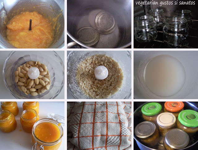Intre timp pun borcanele cateva min in cuptor la 200ºC, capacele le fierb putin in apa dupa care le usuc bine.