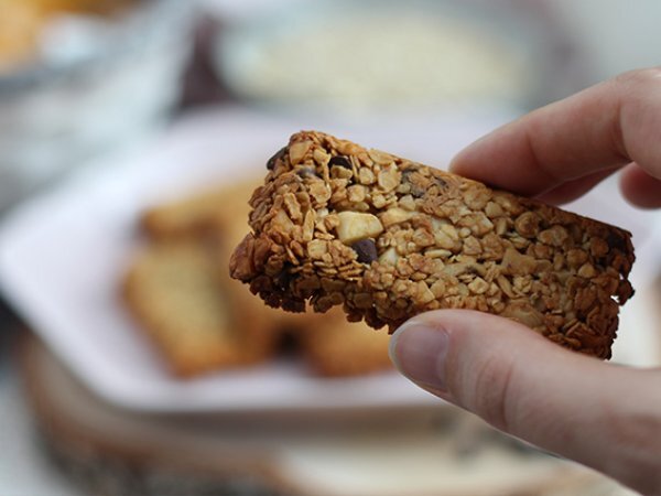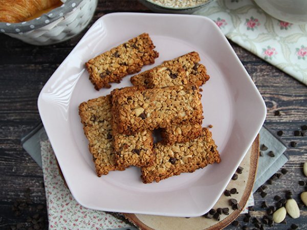Pentru pauza de gustare sau chiar înainte de o sesiune de sport, de exemplu, savurați aceste batoane cu cereale. Ușoare și crocante, cobinând fulgi de ovăz, ciocolată, unt de arahide și migdale, vă puteți imagina gustul? Ne lasă gura apă... Așa că începeți să faceți această gustare ușoară și vegană ;-) Puteți face chiar și o versiune „fără gluten” folosind fulgi de ovăz fără gluten.