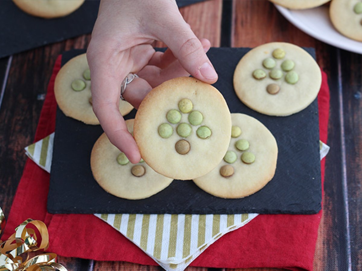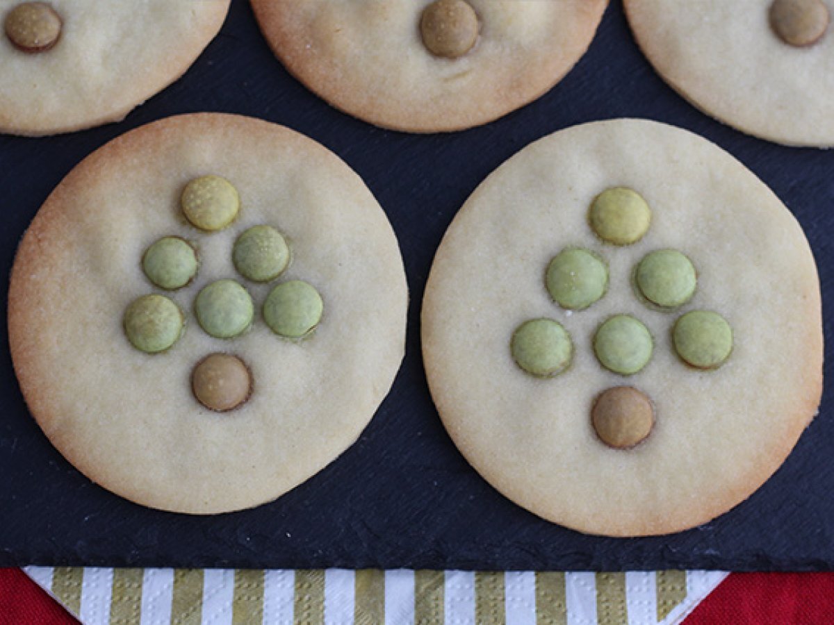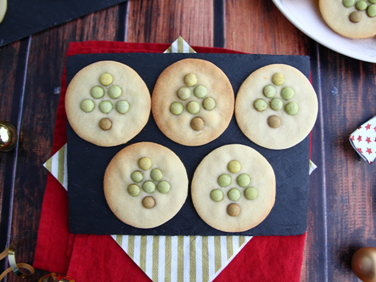 Ingredientele necesare sunt: 100 gr zahăr, 125 gr unt moale, 1 ou, 225 gr făină și bomboane colorate tip smarties (galbene, verzi, maro).