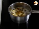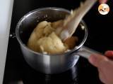 Se ia de pe foc, se adaugă vanilia apoi ouăle unul câte unul, în timp ce amestecați. Transferați aluatul încă cald într-o pungă de patiserie prevăzută cu o duză canelată.