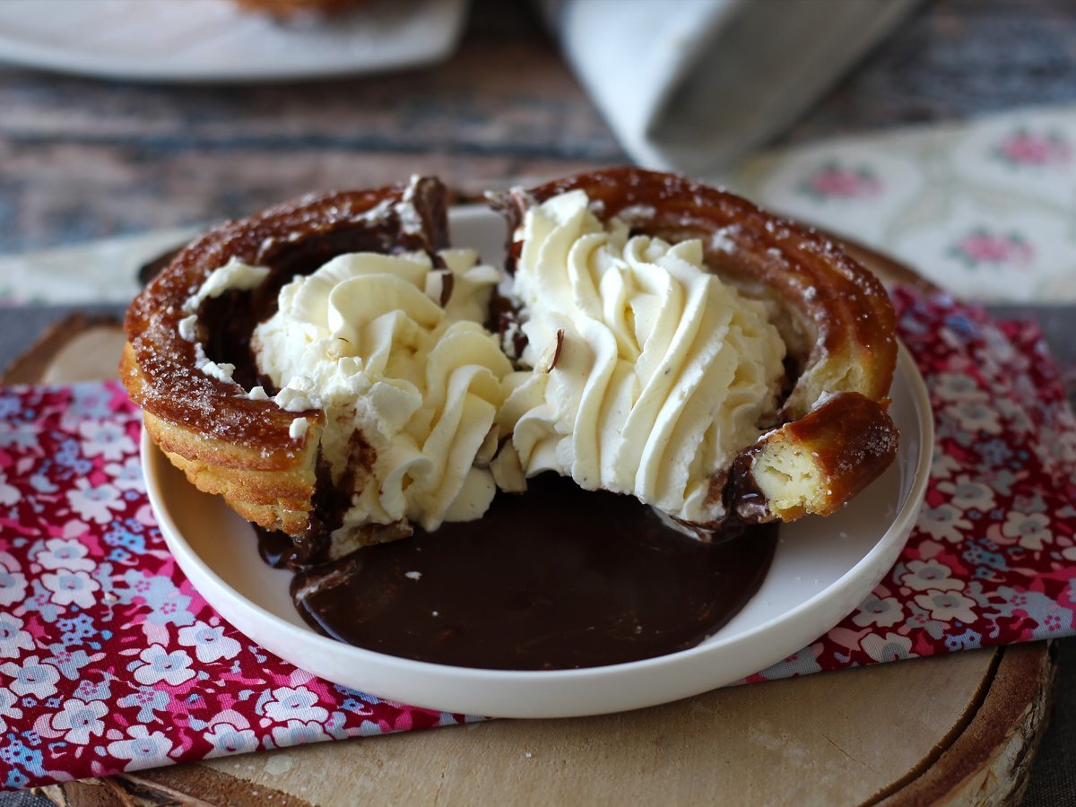 Pentru un desert cu efect „wow”, schimbăm forma churros păstrându-le în același timp delicatețea! Un alt punct bun despre această rețetă? Churros-urile noastre nu sunt prăjite, ci bine coapte! Așa că nu ezitați să le ornați cu înghețată, frișcă, ciocolată topită sau caramel pentru a le face cu adevărat irezistibile! Vă explicăm totul pas cu pas în rețeta noastră detaliată de mai jos ↓