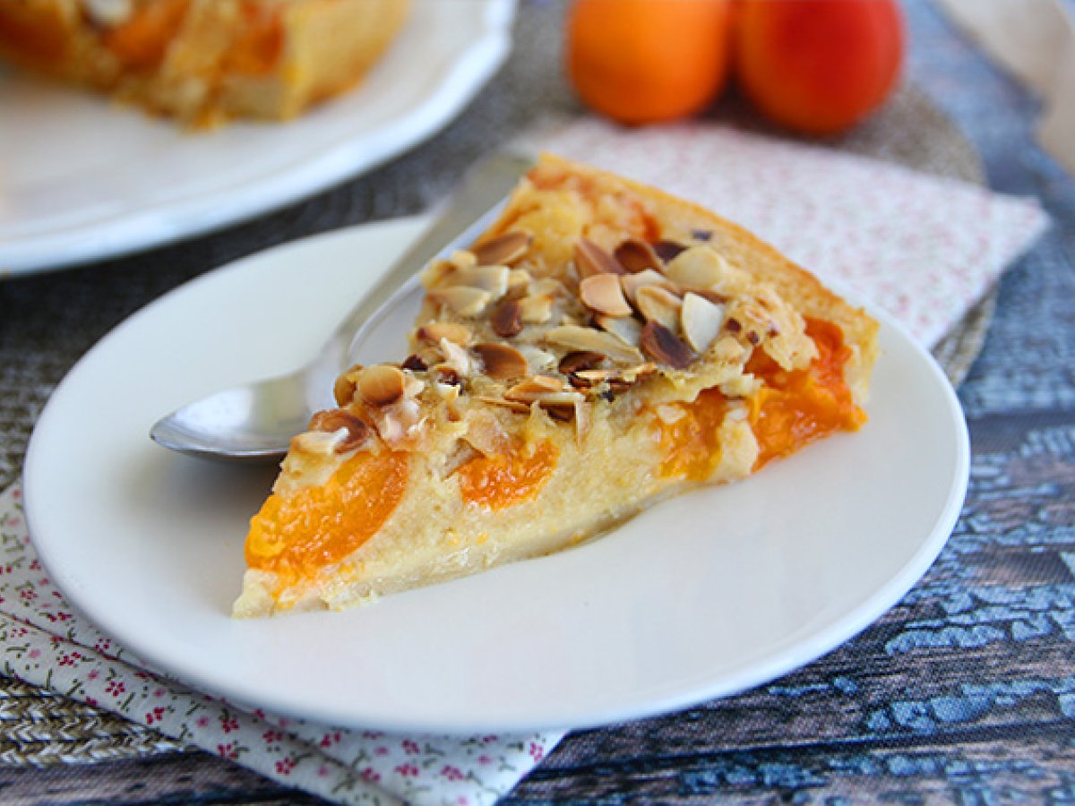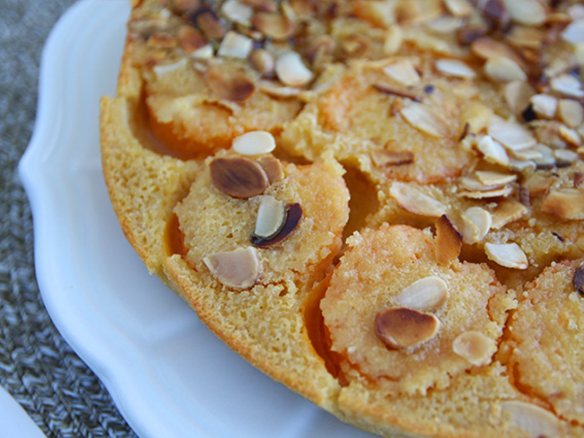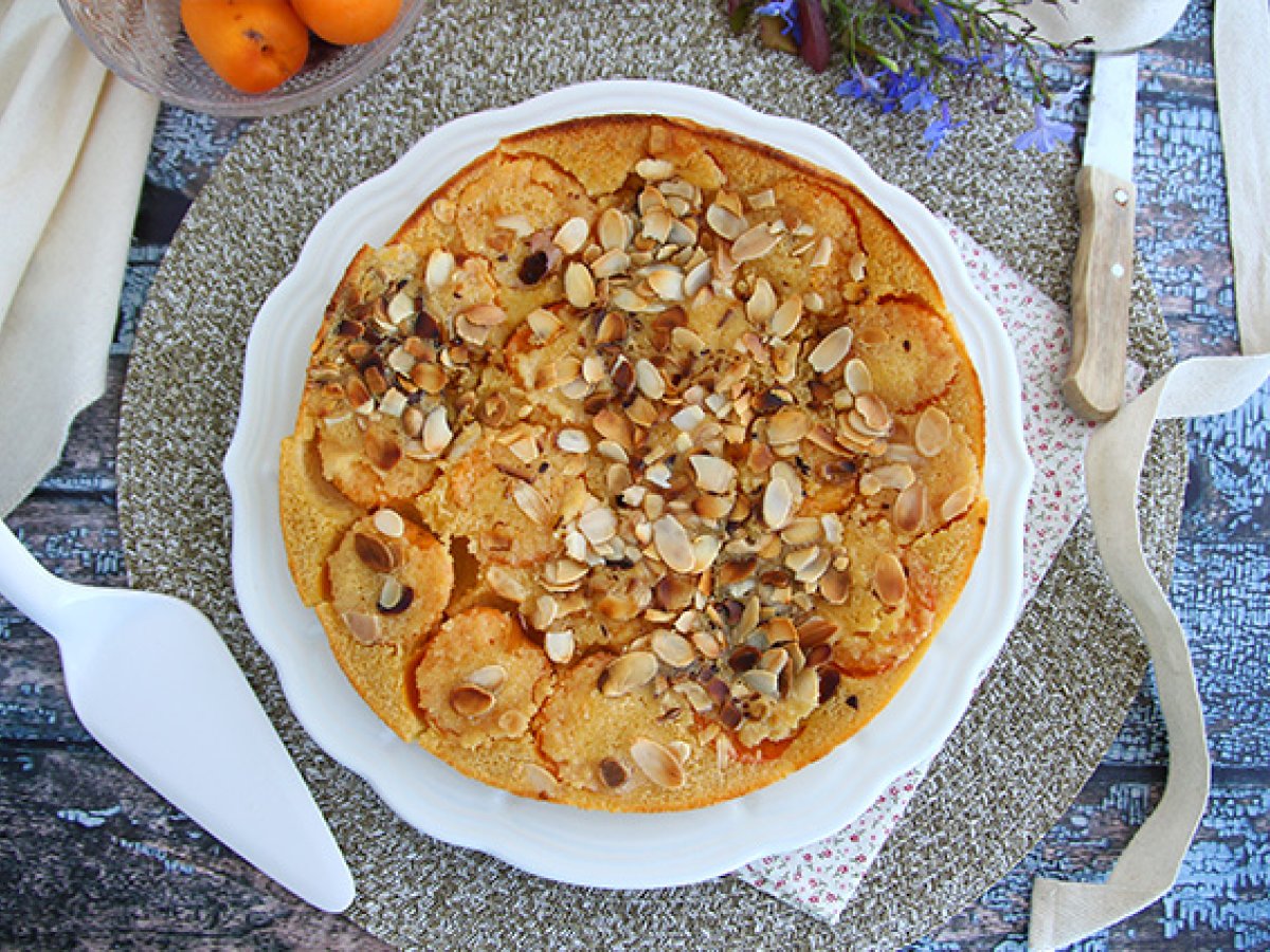 Am inlocuit in reteta clasica de clafoutis, ciresele cu caisele si pentru o nota crocanta am adaugat migdale. Un dulce usor cu fructe de vara, pe placul tuturor! Perfect la cafea, cu un pahar de limonada sau alaturi de inghetata.