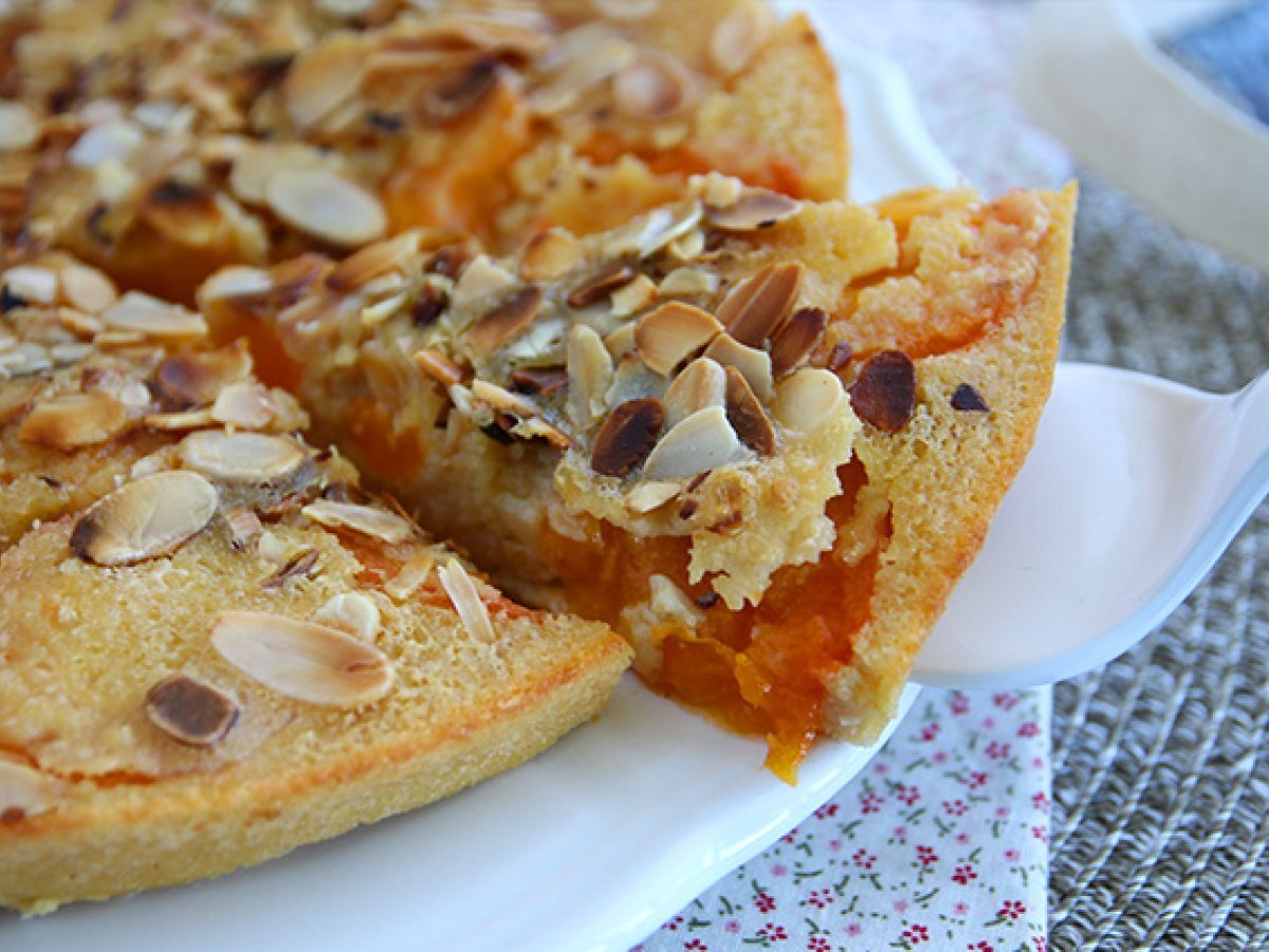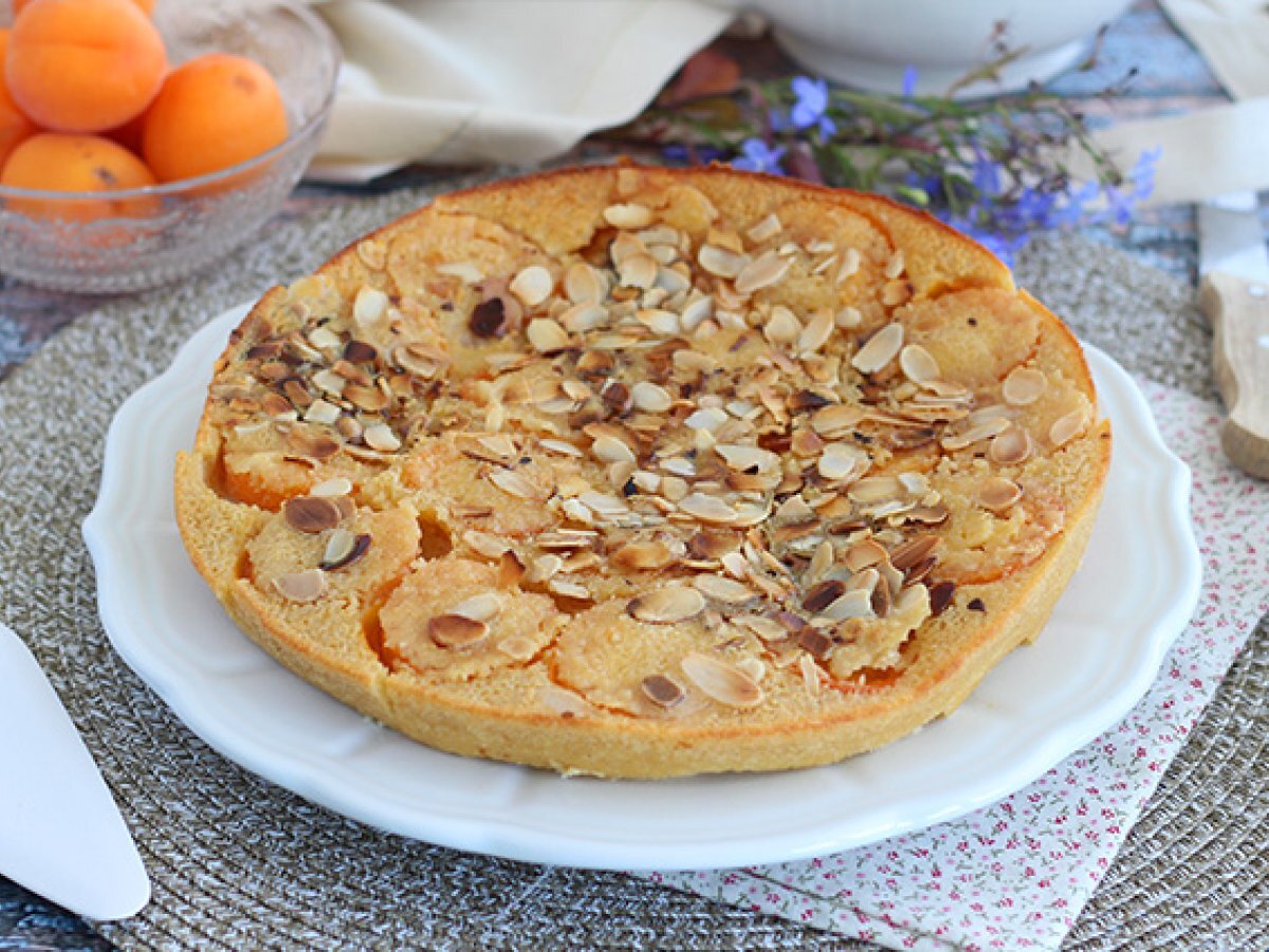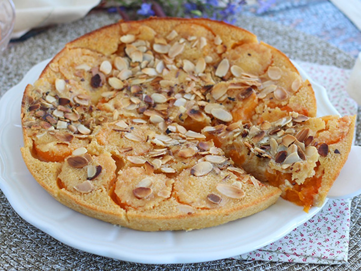 Am inlocuit in reteta clasica de clafoutis, ciresele cu caisele si pentru o nota crocanta am adaugat migdale. Un dulce usor cu fructe de vara, pe placul tuturor! Perfect la cafea, cu un pahar de limonada sau alaturi de inghetata.