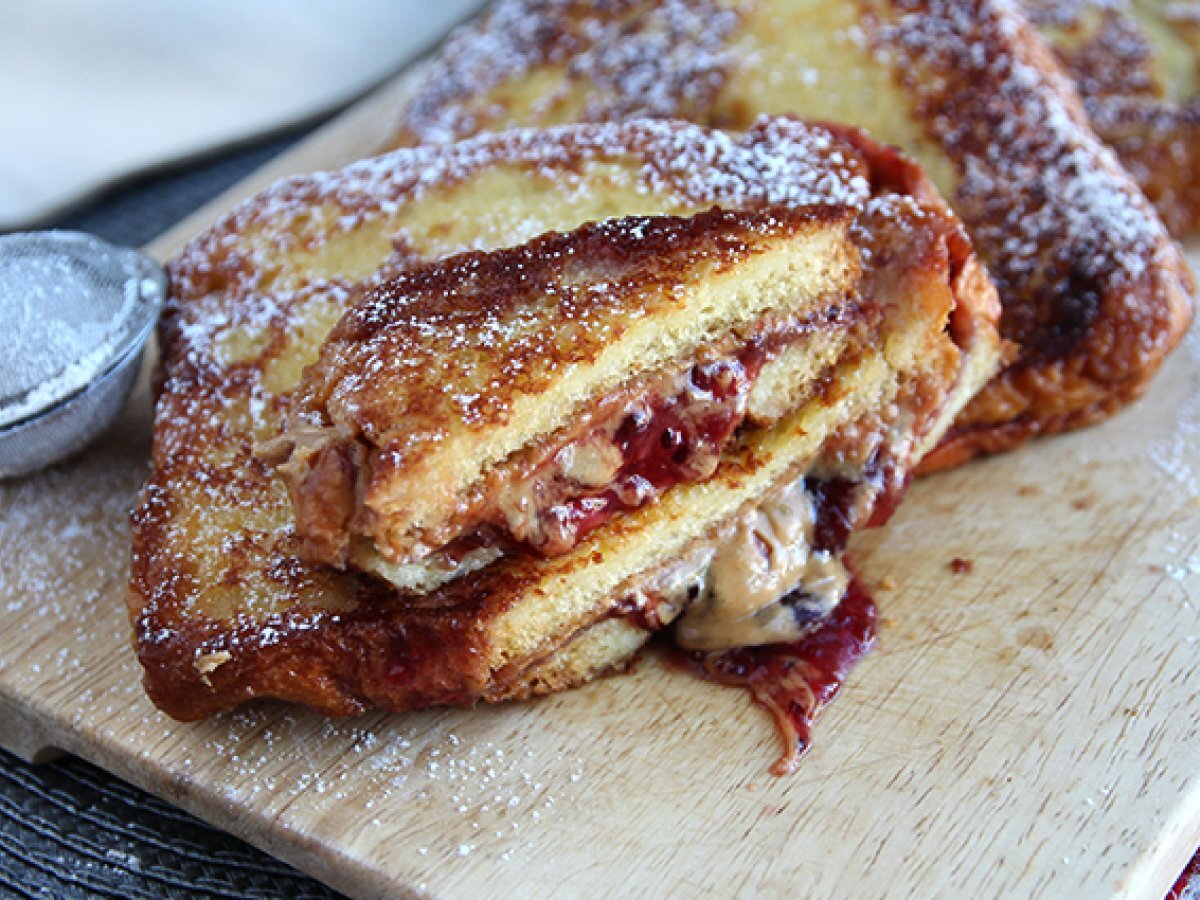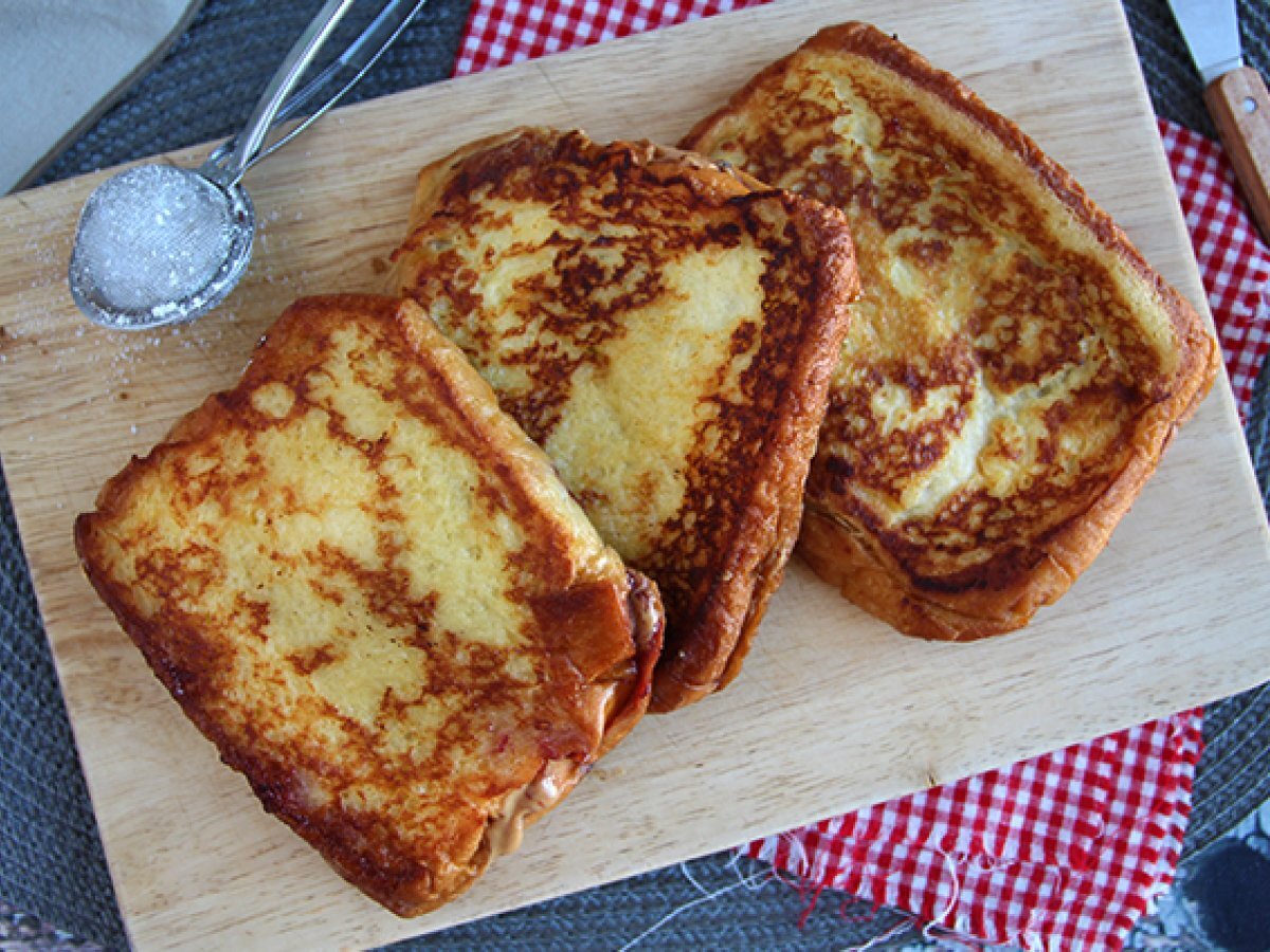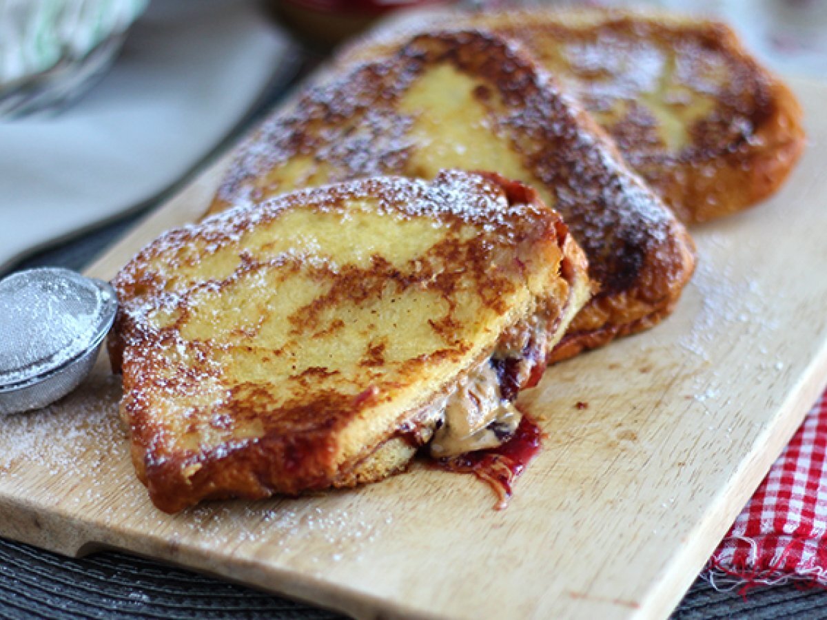 Aceasta este o reteta anti-deseuri, perfecta pentru folosirea painii ramase! Ungeti feliile dvs de paine sau de briosa cu unt de arahide si puneti gem de fructe rosii si veti obtine o gustare perfecta pentru a va incepe ziua :-) Perfecta pentru micul dejun sau ca o gustare de dupa-amiaza, bucurati-va de aceasta reteta extra usoara, explicata pas cu pas mai jos ↓