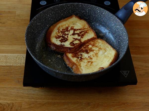 Topiți untul într-o tigaie. Puneți brioșele înmuiate și gătiți-le 5 minute la foc mediu. Întoarceți și gătiți timp de 3 minute.