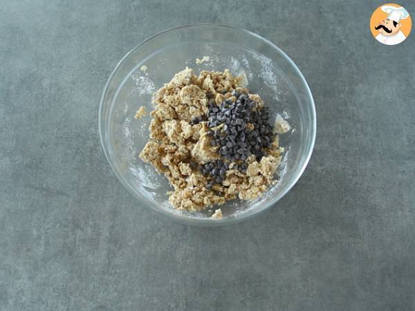 Adaugati pepitele de ciocolata si amestecati cu mainile.