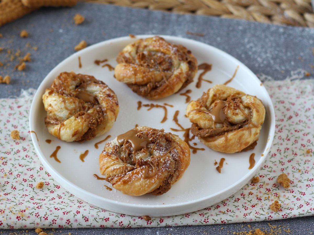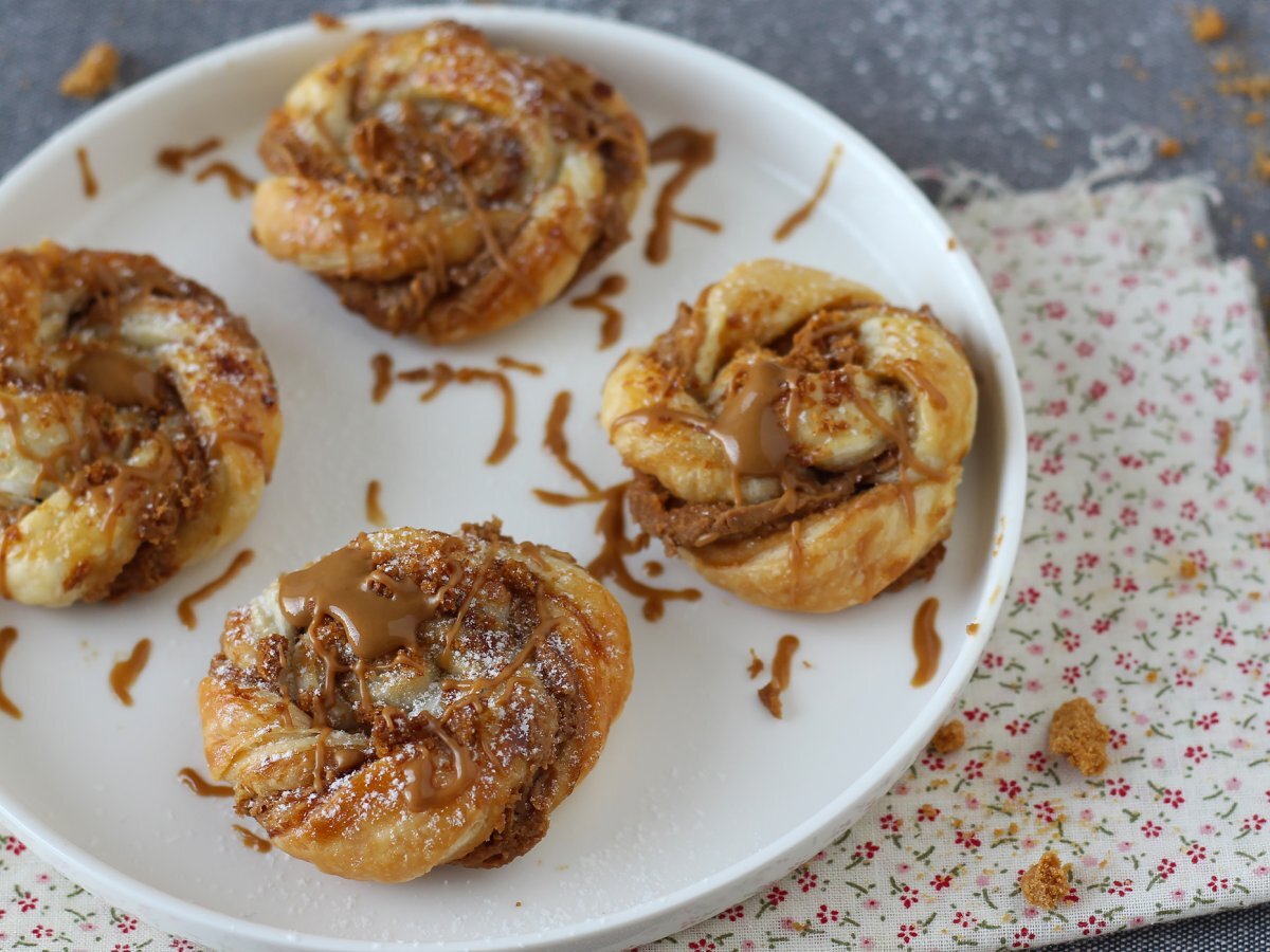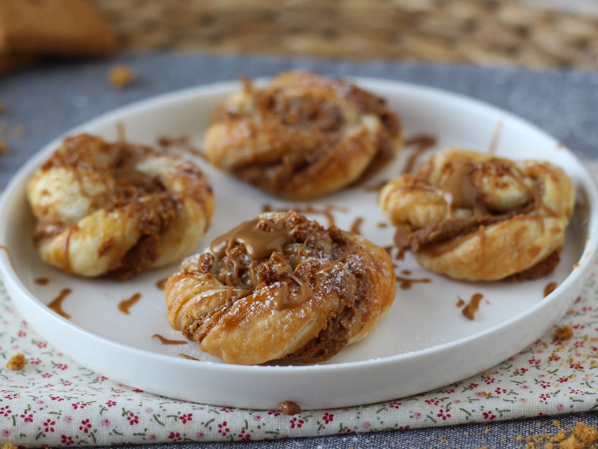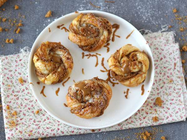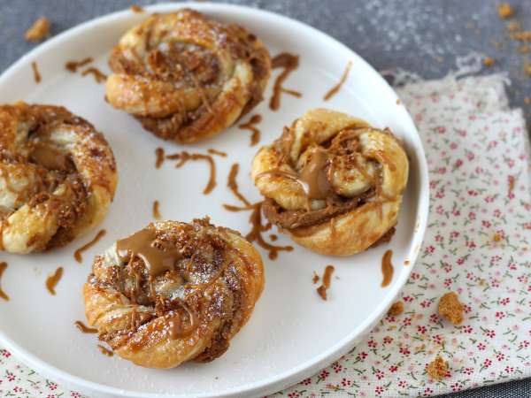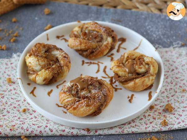 Știți dependența noastră pentru biscuiții speculoos, nu? Cu foarte puține ingrediente și în gata doar câteva minute, pregătește acest desert expres cu un tartinat de speculoos care este asociat cu partea crocantă. Puneți pe fursecuri firimituri de speculoos, tartinat topit și zahăr pudră, când le scoteți din cuptor