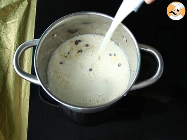 Apoi, trebuie sa asteptati ca laptele sa fiarba, reduceti focul si amestecati cu grija timp de 40 de minute.