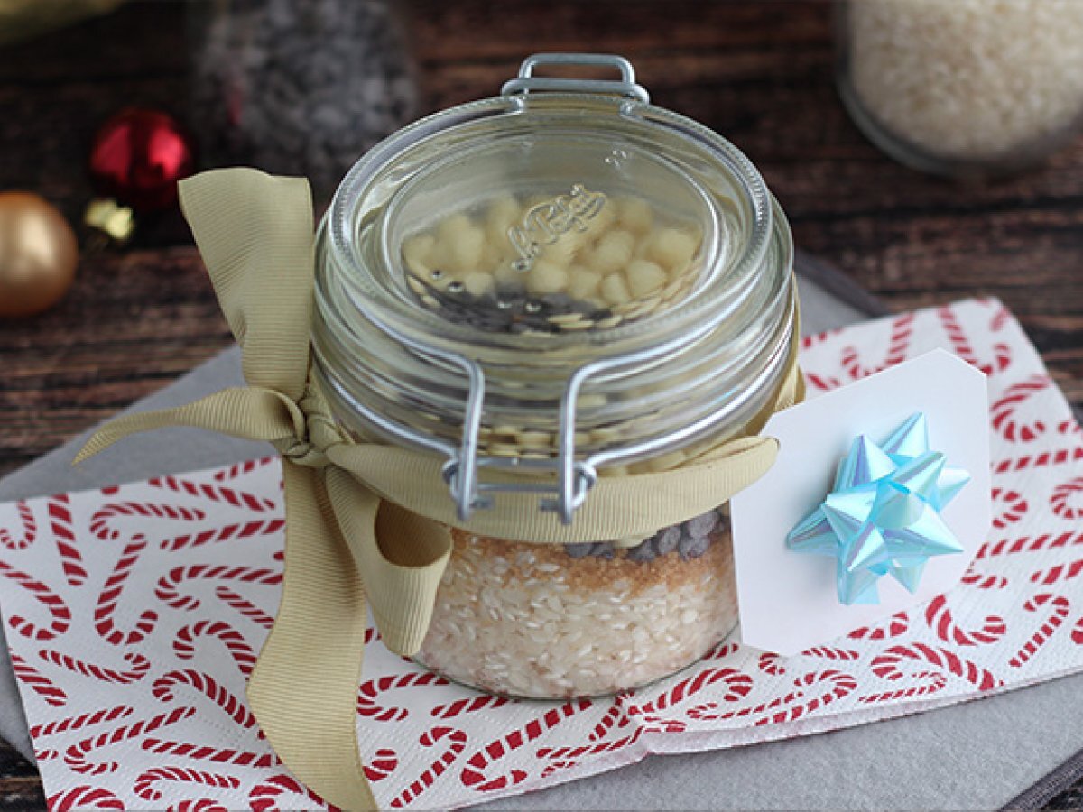 Ce ati spune daca de Craciun ati primi un cadou facut in casa? Si nu ne gandim la "hand made" ... ramanem pe tema gatitului. Pregateste cel mai frumos borcan din sticla si umple-l cu orez, zahar si ciocolata pentru a crea ... un kit de orez cu lapte si ciocolata! Norocosul care va primi acest cadou va trebui sa toarne continutul borcanului intr-o cratita, sa adauge lapte si sa astepte sa se creeze desertul cremos si delicios :-)