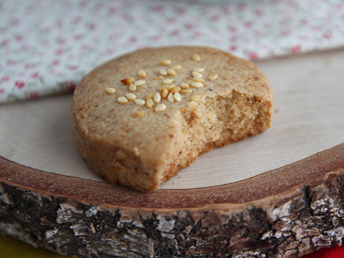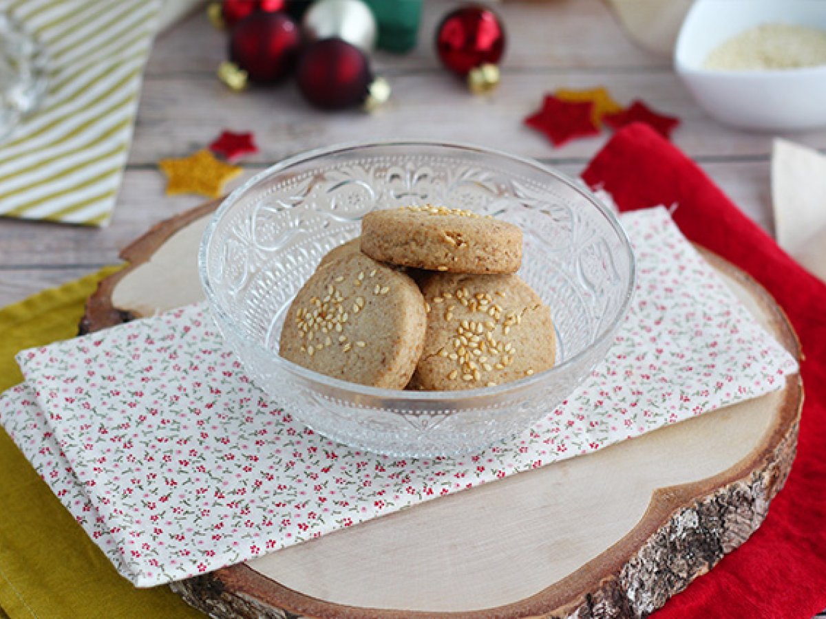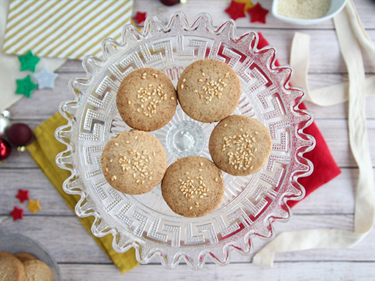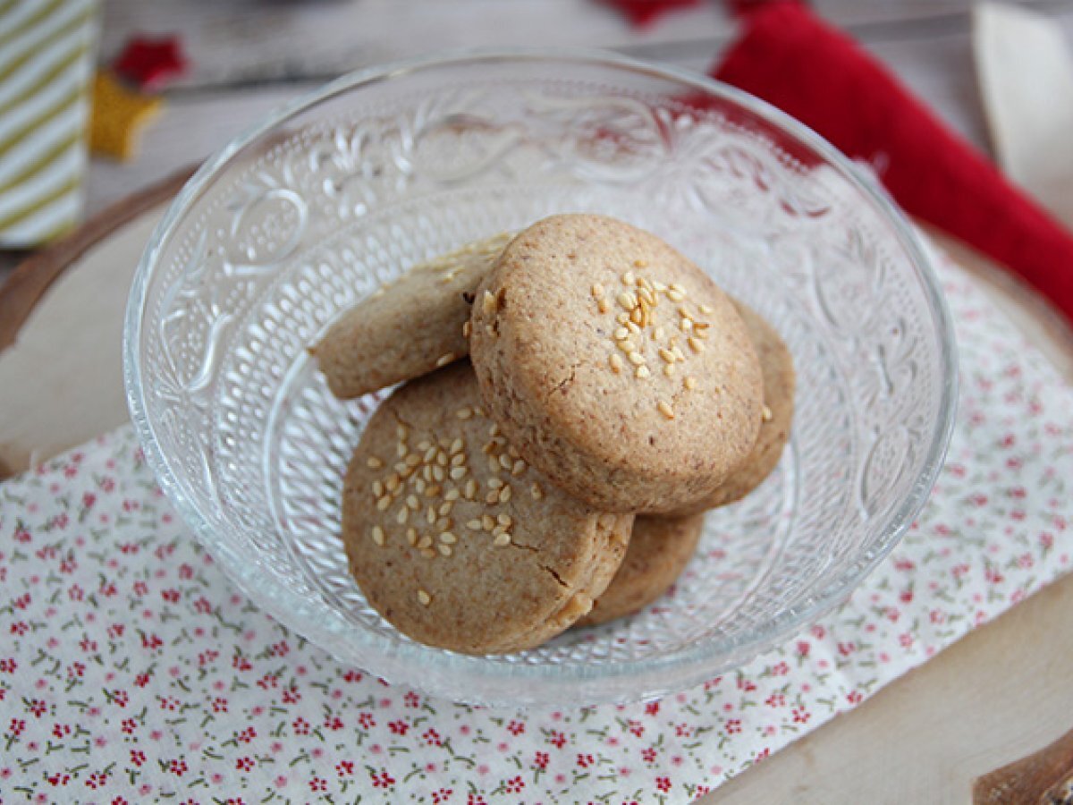 Puneti mantecados intr-o tava cu hartie de copt si adaugati semințe de susan deasupra.