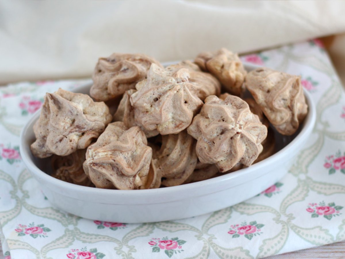 Daca aveti albusuri ramase le puteti utiliza pentru bezele! Un mic dulce care poate insoti ceaiul / cafeaua ;-) De data aceasta, noi am adaugat in compozitie si ciocolata :-)