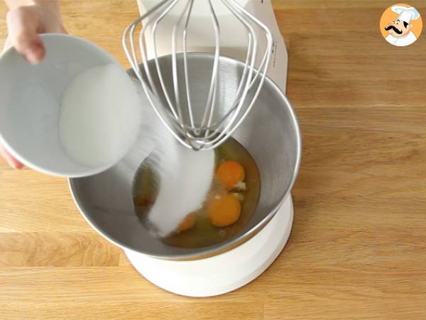 In castronul unui mixer puneti ouale, sarea, zaharul si extractul de vanilie. Bateti la viteza maxima timp de 5 minute: amestecul ar trebui sa-si dubleze volumul.