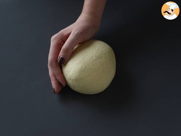 Formați o bilă din aluat și lăsați-l să se odihnească 15 până la 20 de minute sub un prosop curat, la temperatura camerei.