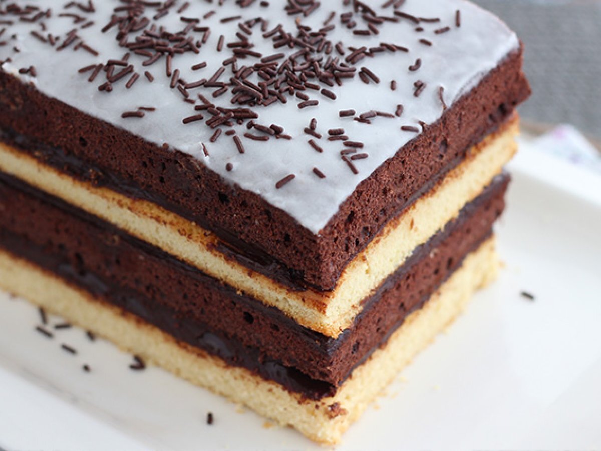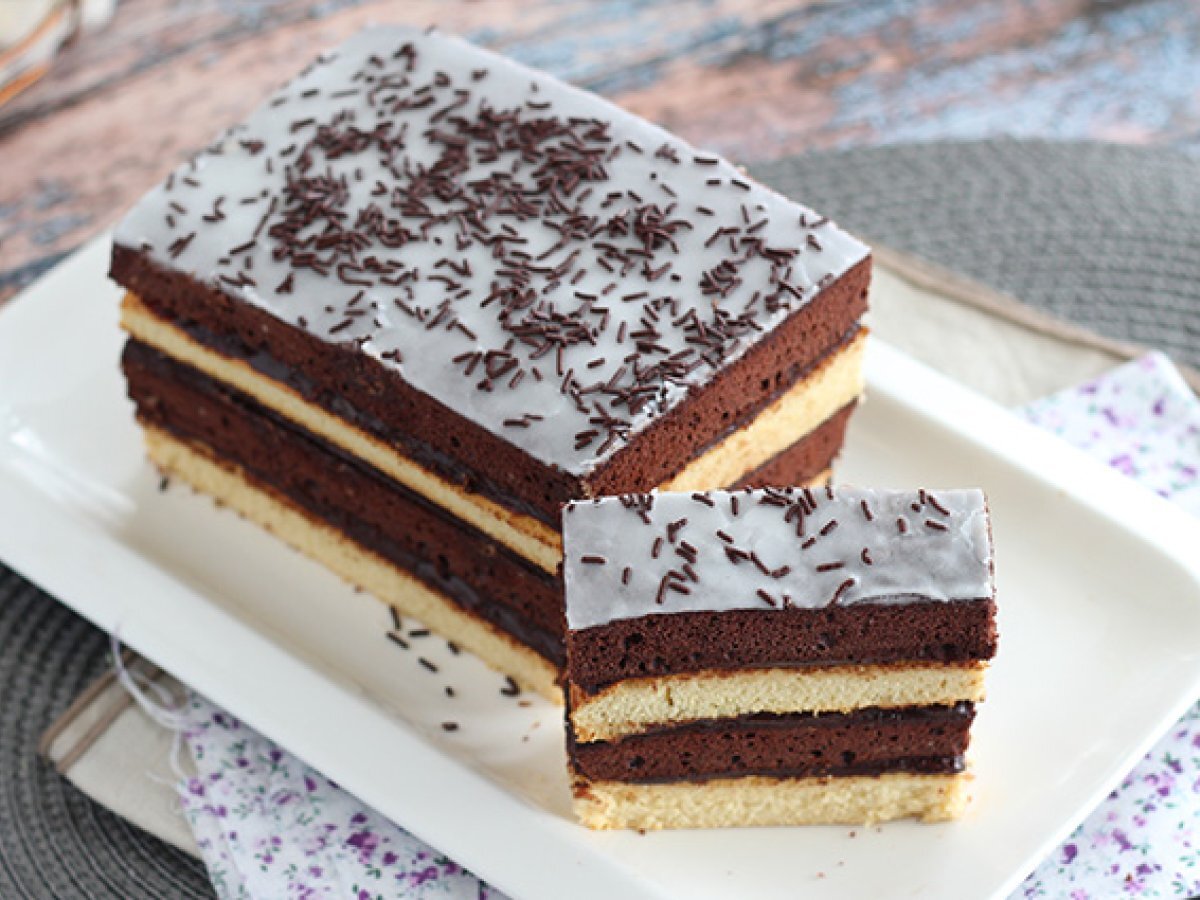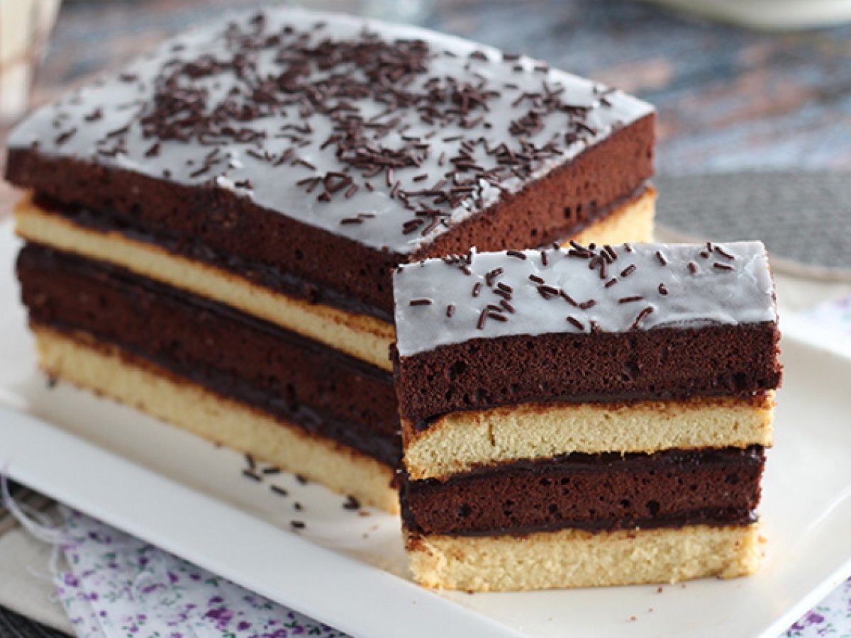 Napolitan este format din 4 blaturi pufoase, aromate cu vanilie si ciocolata, despartite de doua straturi de ganache ciocolata, toate acoperite cu o glazura usoara si betisoare de ciocolata. Toate detaliile de pragatire vi le oferim cu drag in video + reteta scrisa