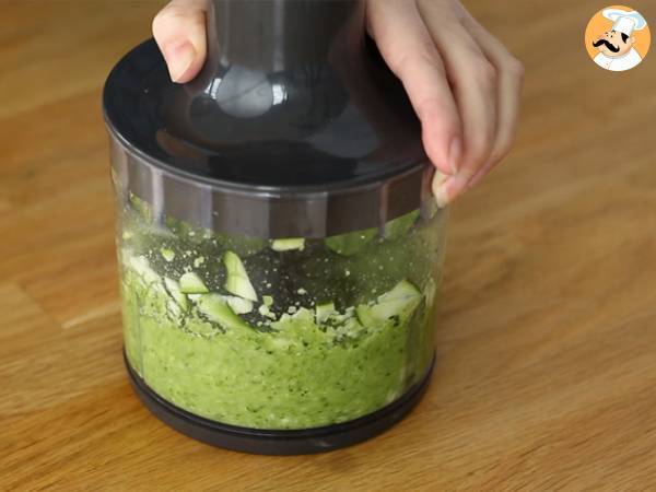 Curatati dovleceii si puneti-i in chopper. Tocati-i si puneti-i peste amestecul anterior.