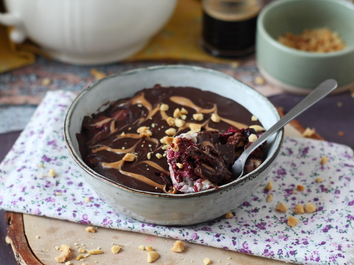 Ovăz cu fructe roșii și ciocolată, un mic dejun sănătos și sățios!
