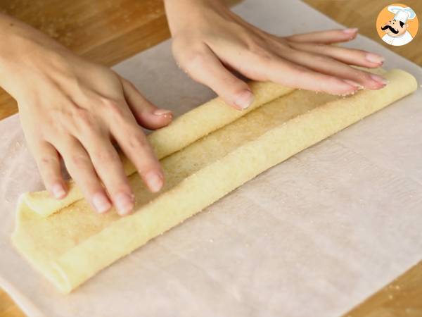 Cu doar 2 ingrediente (aluat de foietaj si zahar) urmati pas cu pas reteta noastra care va atrage atat tineri, cat si varstnici! Poate fi o gustare, un desert, se poate servi la ceai sau cafea.