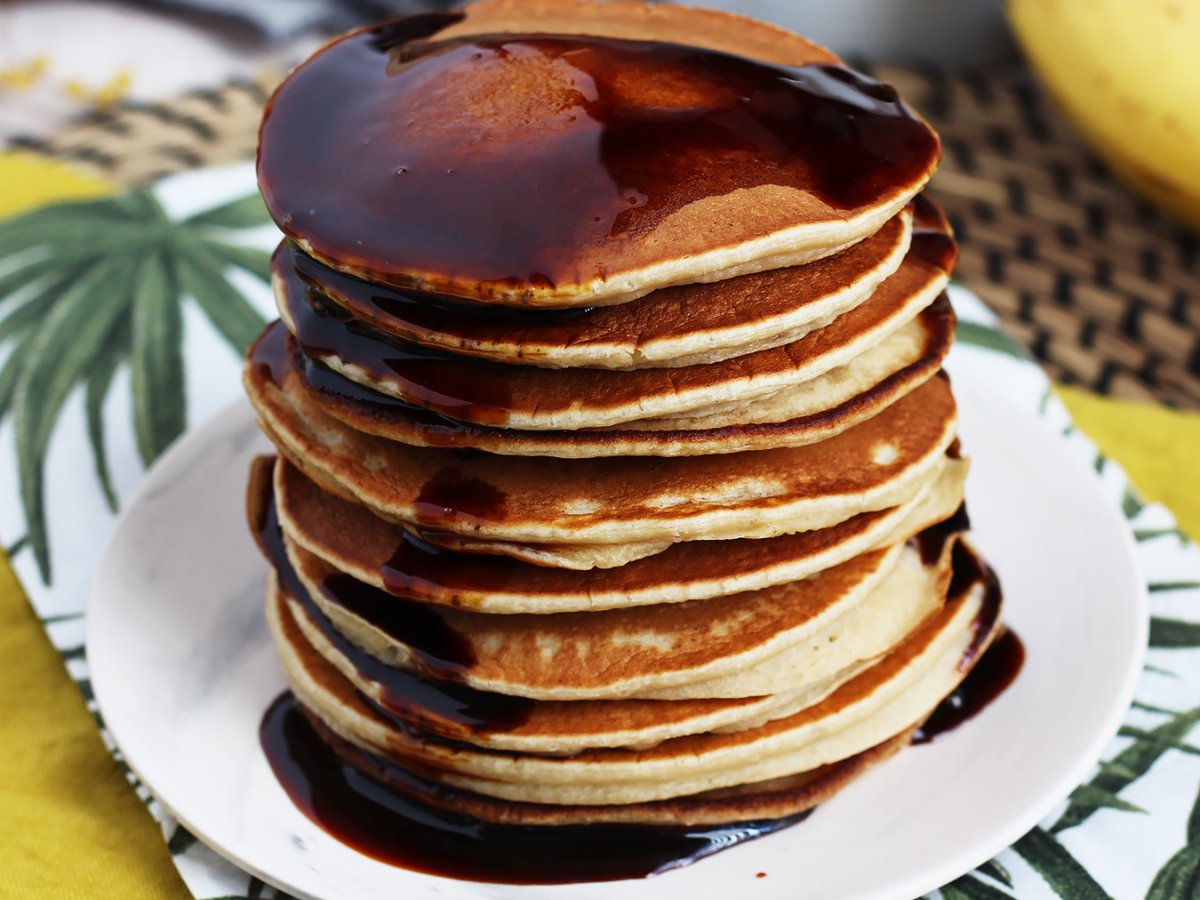 Un munte de clatite pentru micul dejun este un bun inceput de zi! Sfatul nostru pentru a le face mai groase si mai moi, este sa le facem cu banane. Va riscati sa le-ncercati?