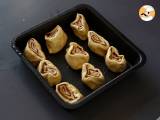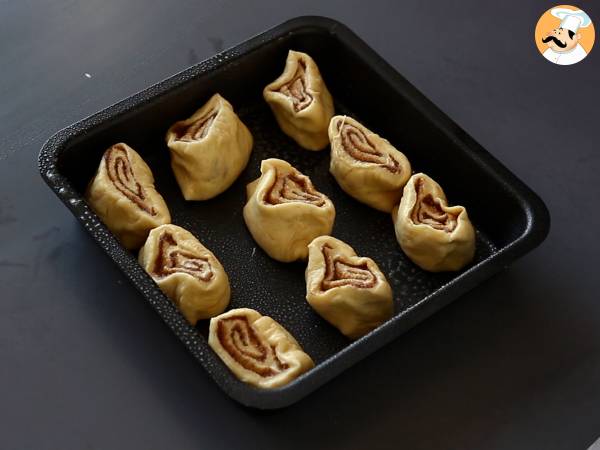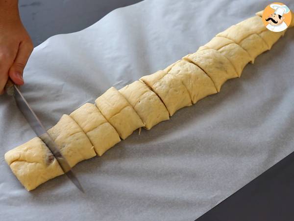 Tăiați ambele capete ale ruloului, apoi tăiați aluatul în 12 bucăți.