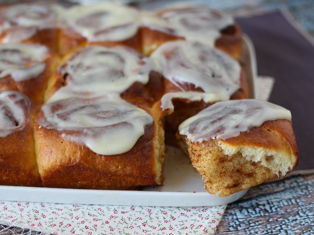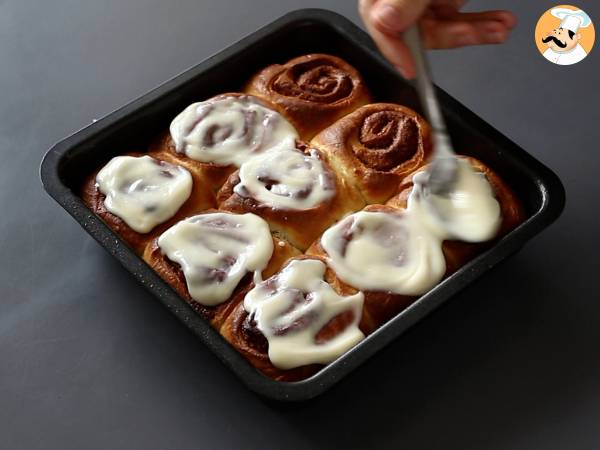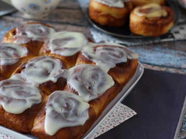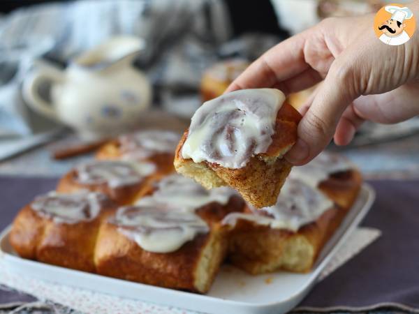 Pentru gustare sau mic dejun, nimic mai delicios decât o brioșă foarte moale ♥ Ceea ce ne place la brioșe este că pot fi decorate în diferite moduri: cu ciocolată, cu unt, cu zahăr, pe scurt, mici plăceri pufoase ca norii. Pentru această rețetă de brioșă, ne îndreptăm direct în Statele Unite pentru a descoperi rulourile cu scorțișoară, delicioasele produse de patiserie, cu scorțișoară și cu glazură de brânză! Cunoscută în mod normal sub numele de „Kanelbulle” de unde își are originea în Suedia, această brioșă a fost popularizată în America de Nord, unde a fost adăugată această glazură tipică! Testează rețeta și spune-ne ce părere ai în comentarii ;-)
