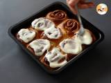 Rulouri cu scorțișoară, brioșă cu scorțișoară și glazură de vanilie