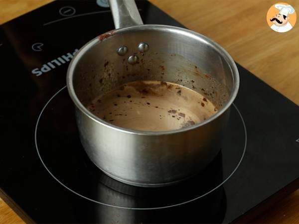 Incalziti laptele, zaharul, cafeaua solubila și cacaoa, intr-o cratita. Lasati sa fiarba timp de 5 minute, apoi lasati sa se raceasca.