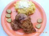 Ingrediente: Am folosit: 7 felii de cotlet de porc fara os sos teriyaki sos soia, curry piper negru unt,ulei,vin rosu faina de malai, ulei de masline, sare, unt...