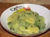 Ingrediente: 200 g malai grisat 500 g cartofi 500 ml apa 200 ml lapte 300 g branza iute de oi (200 pentru compozitie si 100 pentru servit deasupra) 100 g...