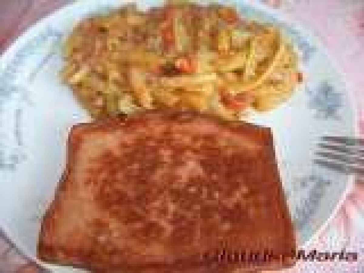 se pune la calit ceapa,ardei rosu si sunca afumata taiata marunt,da un gust special mancarii