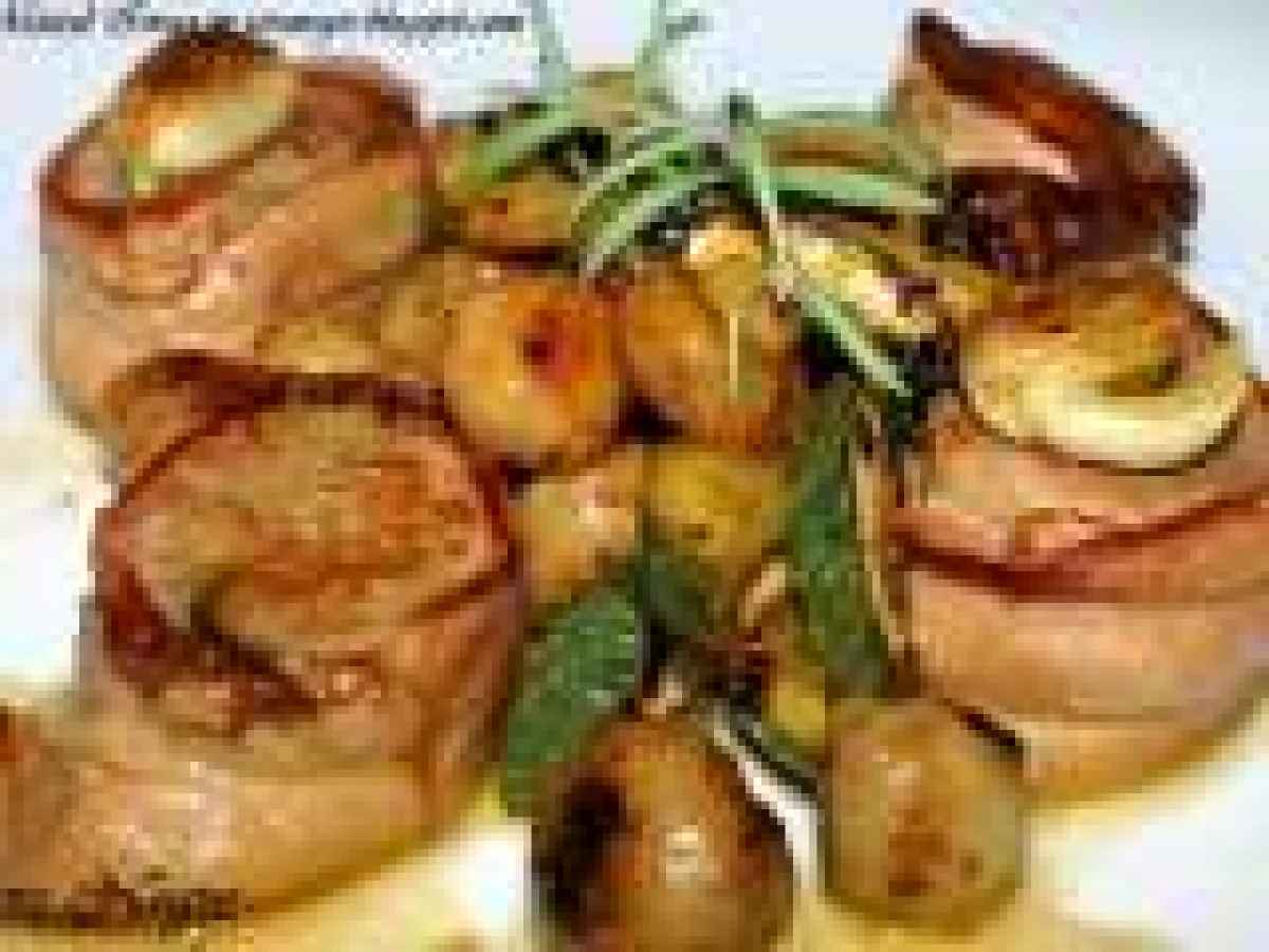 Muschi de porc cu bacon, zucchini si ciuperci champignion