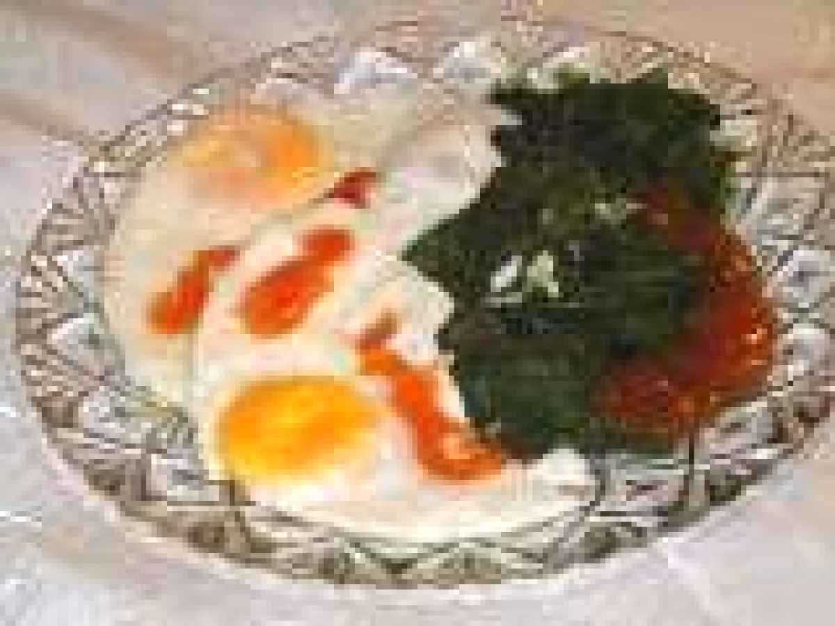 Pana a fiert spanacul am pregatit 2 oua ochiuri.