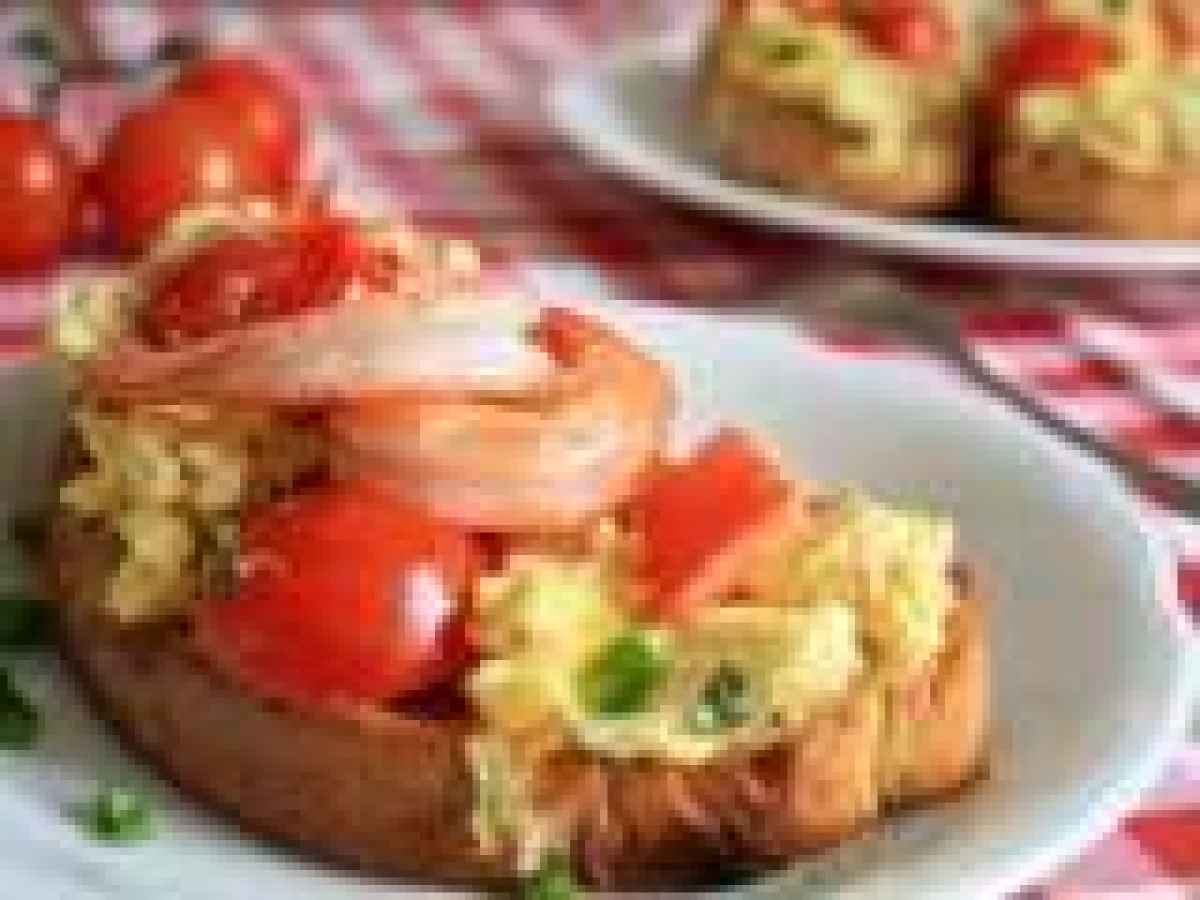 Aseaza ouale pe felii de paine prajita, frecate cu usturoi, si on top of that, pune cativa creveti :D