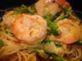 Ingrediente: 125 g paste cu spirulină (sau paste cu ou) 200 g creveți (curățați) 2 linguri de ulei de măsline 15 g unt 40 gr vin alb 1 cățel de usturoi suc de...