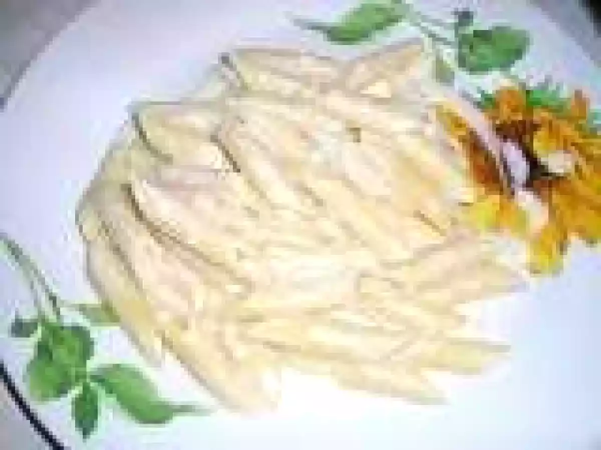 Taiati cubulete branzeturile. Puneti intr-o craticioara la foc mic, laptele si cand e caldut adaugati branza si amestecati in asa fel incat sa se amestece bine....Adaugati sare si piper.Intre timp fierbeti pastele si cand sun t fierte le scurgeti si adaugati peste crema de branza, pentru cateva secunde.....se servesc imediat...cine doreste poate presara putin piper...Nota: branzeturile pot varia in functie de gusturi.....totusi trebuie sa se fileze....