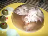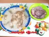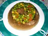 Ingrediente: 6 oua crude 3 aripi de curcan 3 morcovi 1 telina 3-4 linguri porumb din conserva 1 pliculet gelatina - pe care am uitat sa-l pun in - poza cateva...