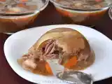 Ingrediente: 1/2 cap de porc un rasol 1 morcov o ceapa cativa catei de usturoi foaie de dafin sare,piper Aceasta racitura,(de porc) o facem numai de Anul nou.