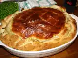 Ingrediente: 1 pachet foi de placinta 6 oua 2 catei de usturoi 500 g carne tocata amestec (vita si porc) 2 cepe 500 ml bere blonda cascaval ulei pentru calit si...