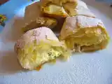 Ingrediente: 300 g faina, 100 g margarina, 100 ml apa, un praf de sare. 1 kg dovleac, 100 g zahar, 50 g stafide, 50 g nuci, 50 g unt, esenta rom, 2 pliculete...