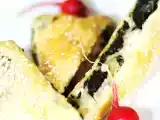 Ingrediente: 6 foi de placinta, taiate in jumatate ulei de masline cu aroma de busuioc 50 g pesmet Pentru umplutura: 250 g branza de vaci 450 g urda 2 maini de...