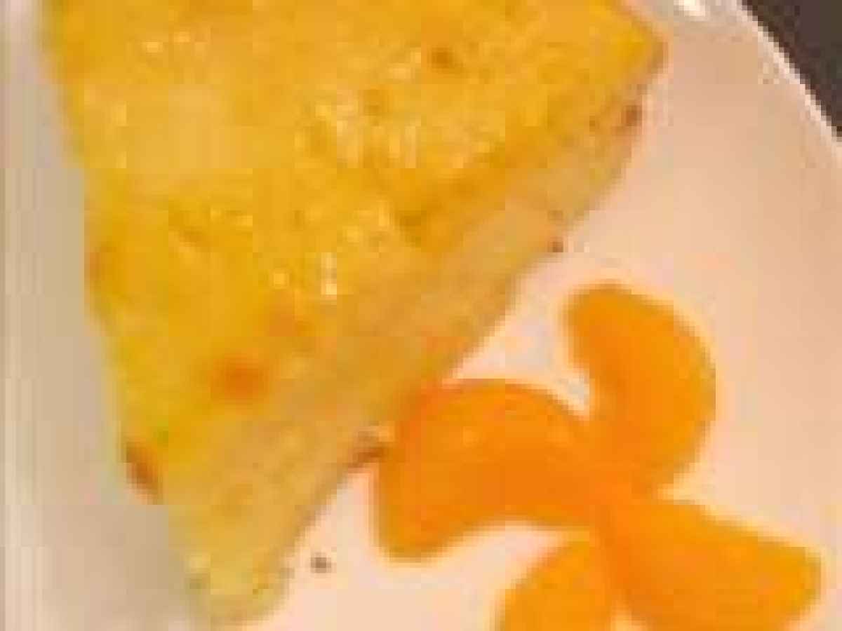 Se strange sucul de la portocale iar coaja se rade. Se amestec? f?ina, 1 can? de zah?r, laptele, ou?le, untul, sucul de lamaie, stafidele, praful de copt ?i sarea bine împreun?. Se toarn? aluat in tava unsa. Se d? la cuptor 40-45 minute sau pân? când scobitoarea iese curata.