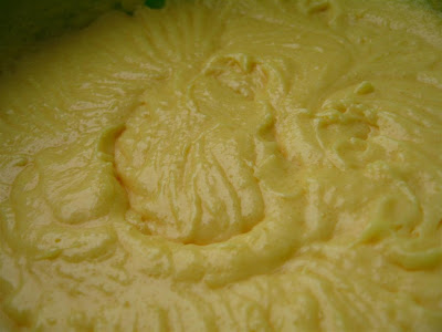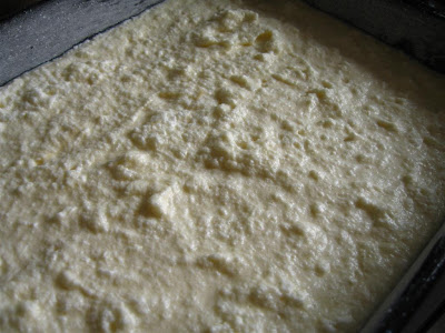 obtii o compozitie cam ca o smantana, nu te speria caci asa trebuie sa si fie, o torni in tava unsa cu unt si tapetata cu faina exact asa cum este