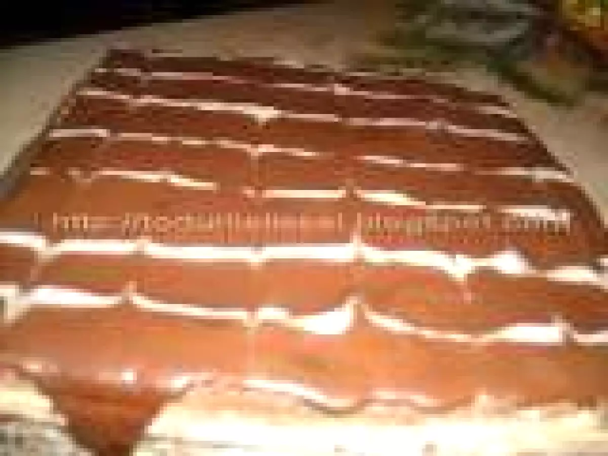 Deasupra am pus o glazura de ciocolata: 200 g ciocolata topita cu 120 ml frisca.