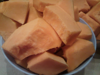 Ia uitati ce mandrete de dovleac ... imi pare rau ca nu l-am pozat intreg (ma rog, pe jumatate, ca asa a fost taiat ... dar o jumatate care a cantarit peste 10 kg :)))